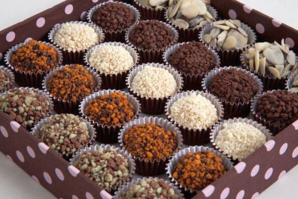 O docinho 100% brasileiro ganha versões com chocolate belga, castanha de caju, pistache, nozes, farofa de amendoim, pimenta, coco queimado, cookies, gergelim, pimenta, palha italiana, pão de mel e outros confeitos populares.